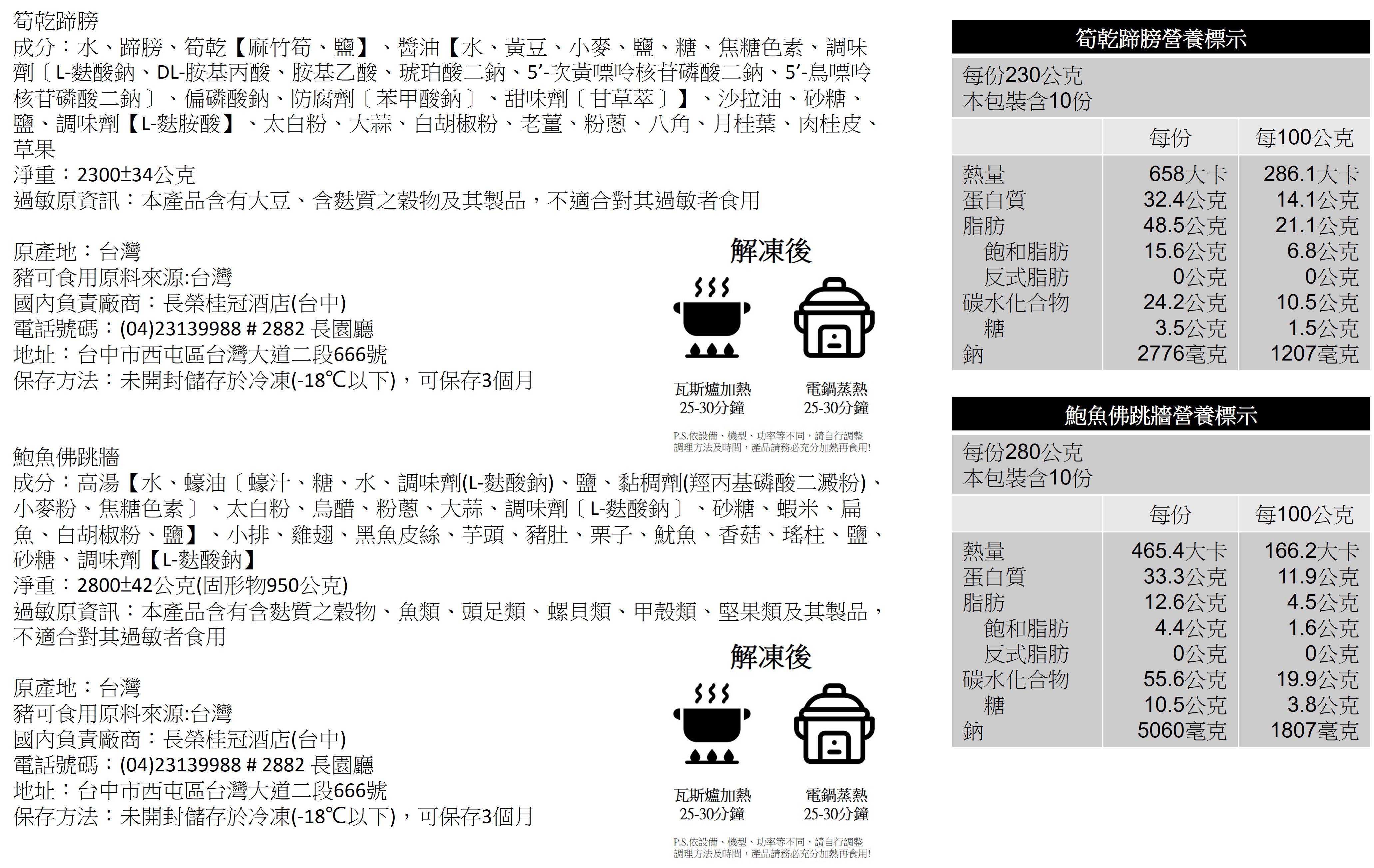 五福臨門 (烏魚子、醉雞、蜜汁核桃、蒜味海蜇、墨魚香腸) 筍乾蹄膀 鮑魚佛跳牆 XO醬百菇雙鮮-松阪肉、花枝 花膠金蟲草燉全雞 櫻花蝦金銀腸蒸米糕 港式雙美點-大理石流沙包、蟹黃燒賣 |