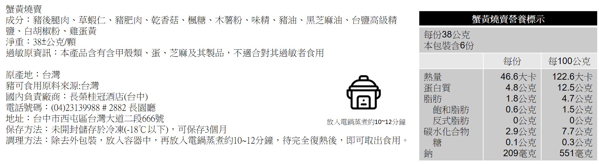 請參照營養標示說明 |