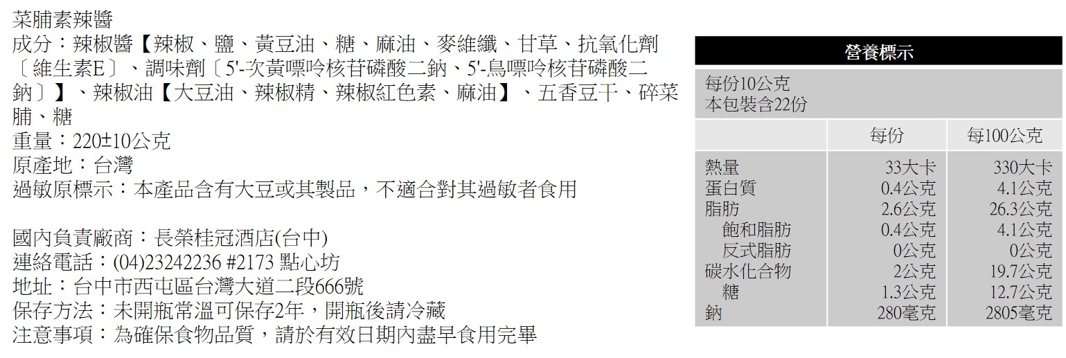 * 凡點用年菜外帶素桌菜,即贈送主廚自製素辣椒醬一瓶