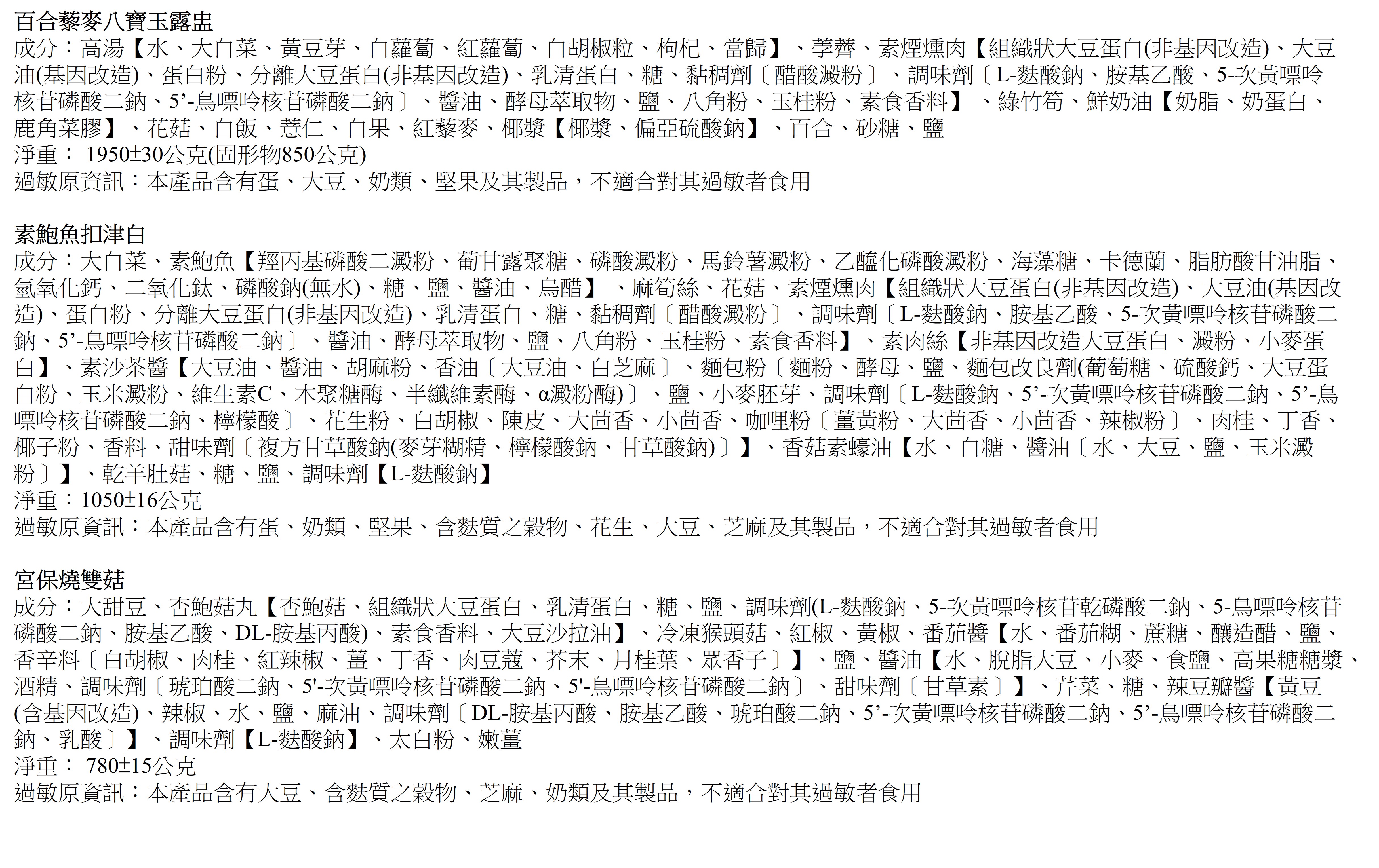 | 長園中餐廳素食年菜外帶(6人份)-蛋奶素 商品編號 : 0002030 | 售價 NT$9,088 |