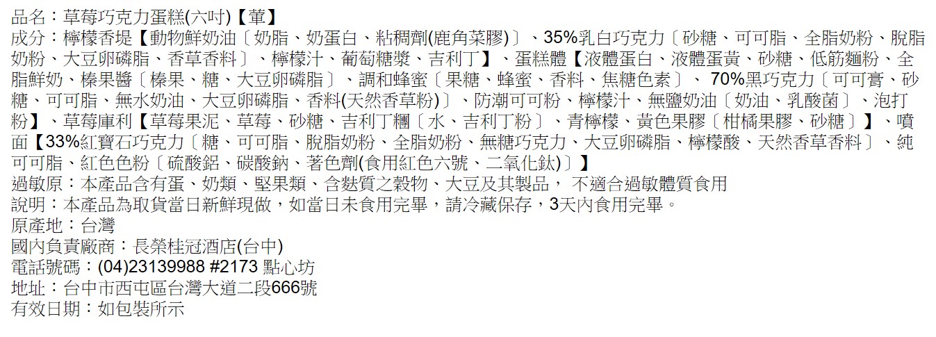 | 草莓巧克力蛋糕【葷】 商品編號 : 0002069 |
