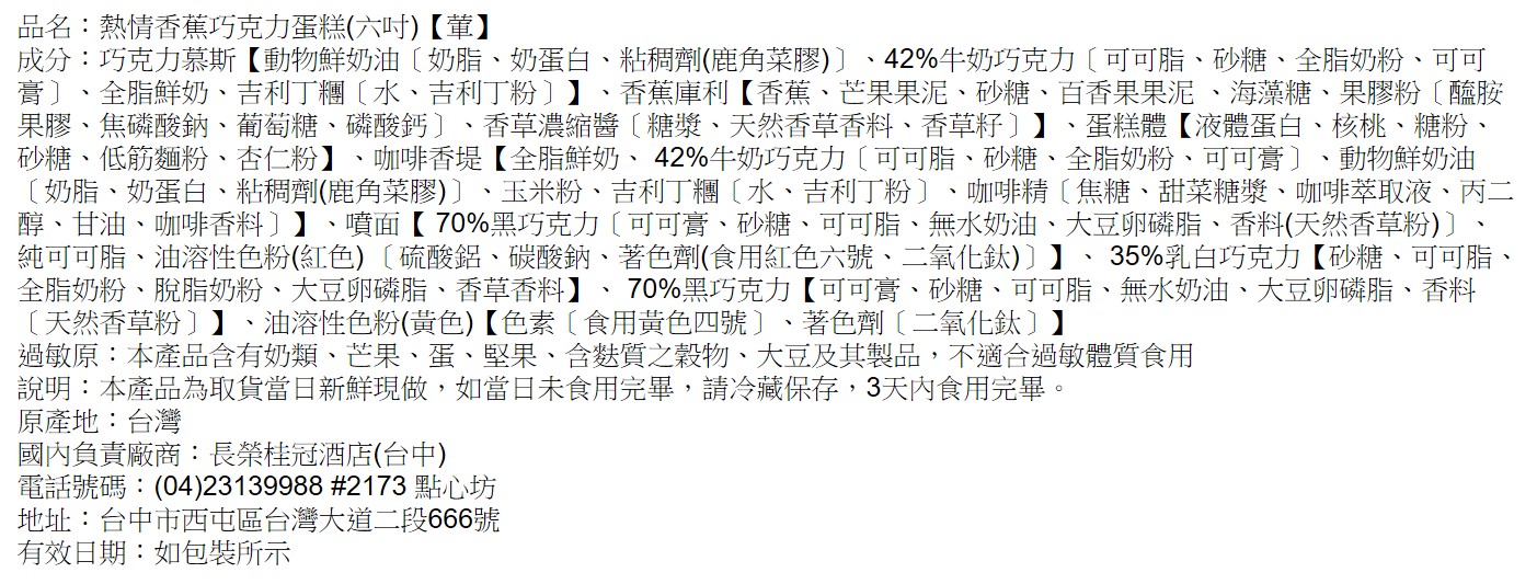 | 熱情香蕉巧克力蛋糕【葷】 商品編號 : 0002072 |