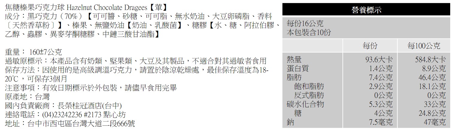 | 焦糖榛果巧克力球【葷】 商品編號 : 0001492 |