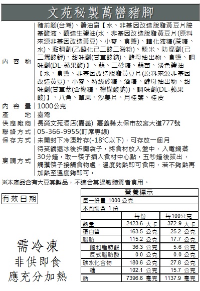文苑秘製萬巒豬腳(重量1000g/包) |